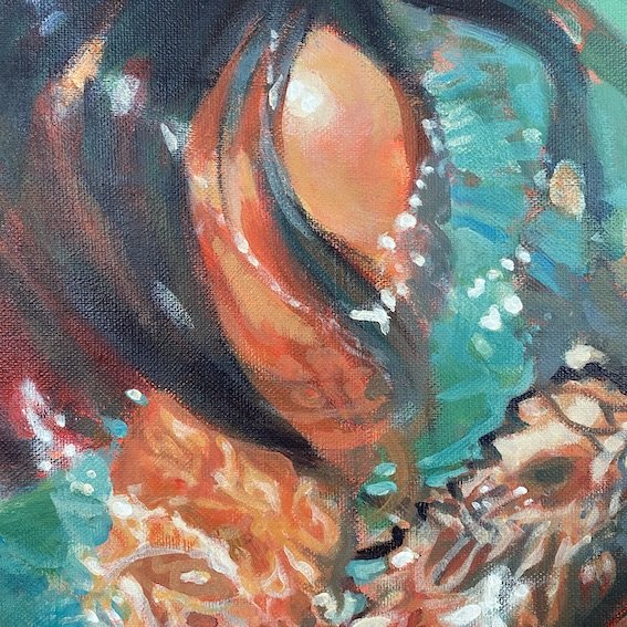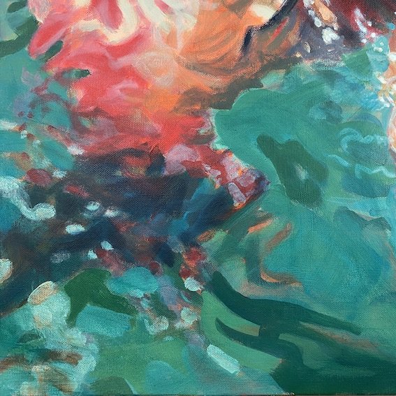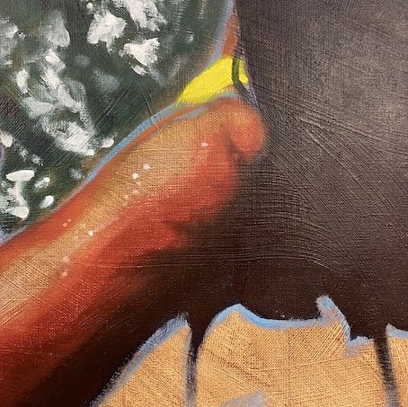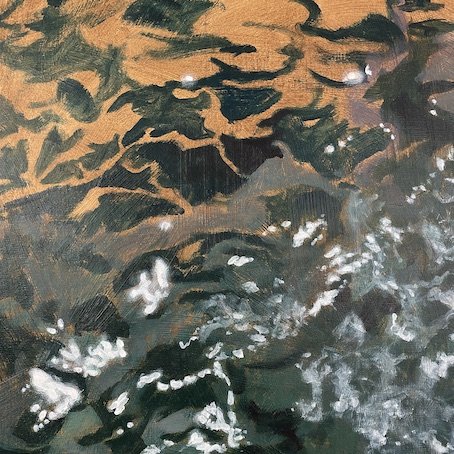 Je m’y étais essayé une première fois avec un petit format sur toile. Plutôt satisfaisant. Rapidement envolé chez un collectionneur en Californie. J’y suis revenu via ma dernière série small works « Underwater vibes ». Un deuxième essai pour simplifier au maximum cette image complexe.