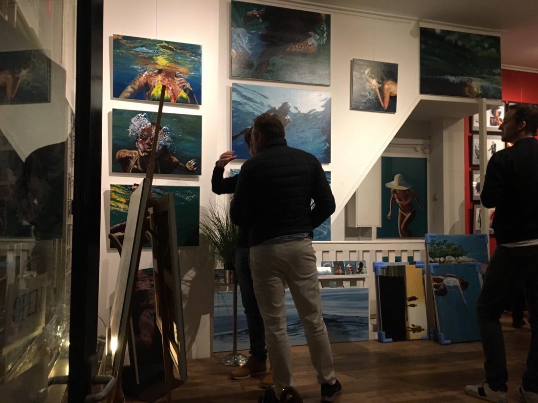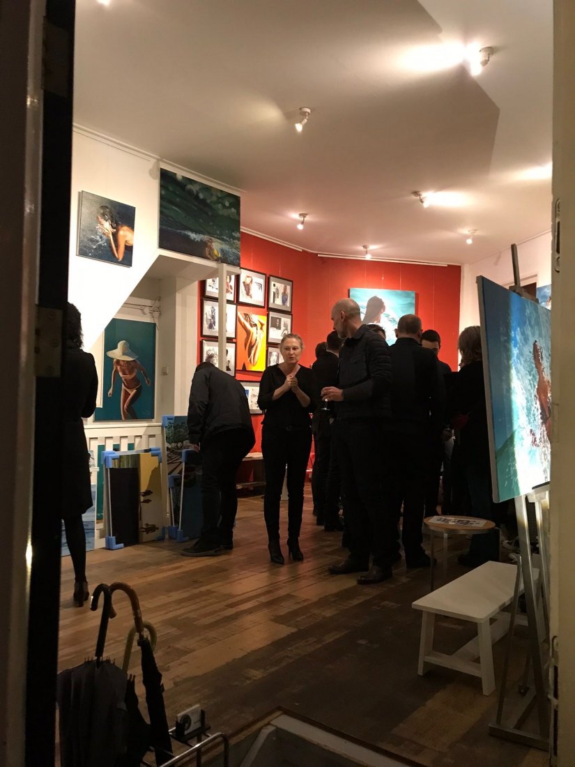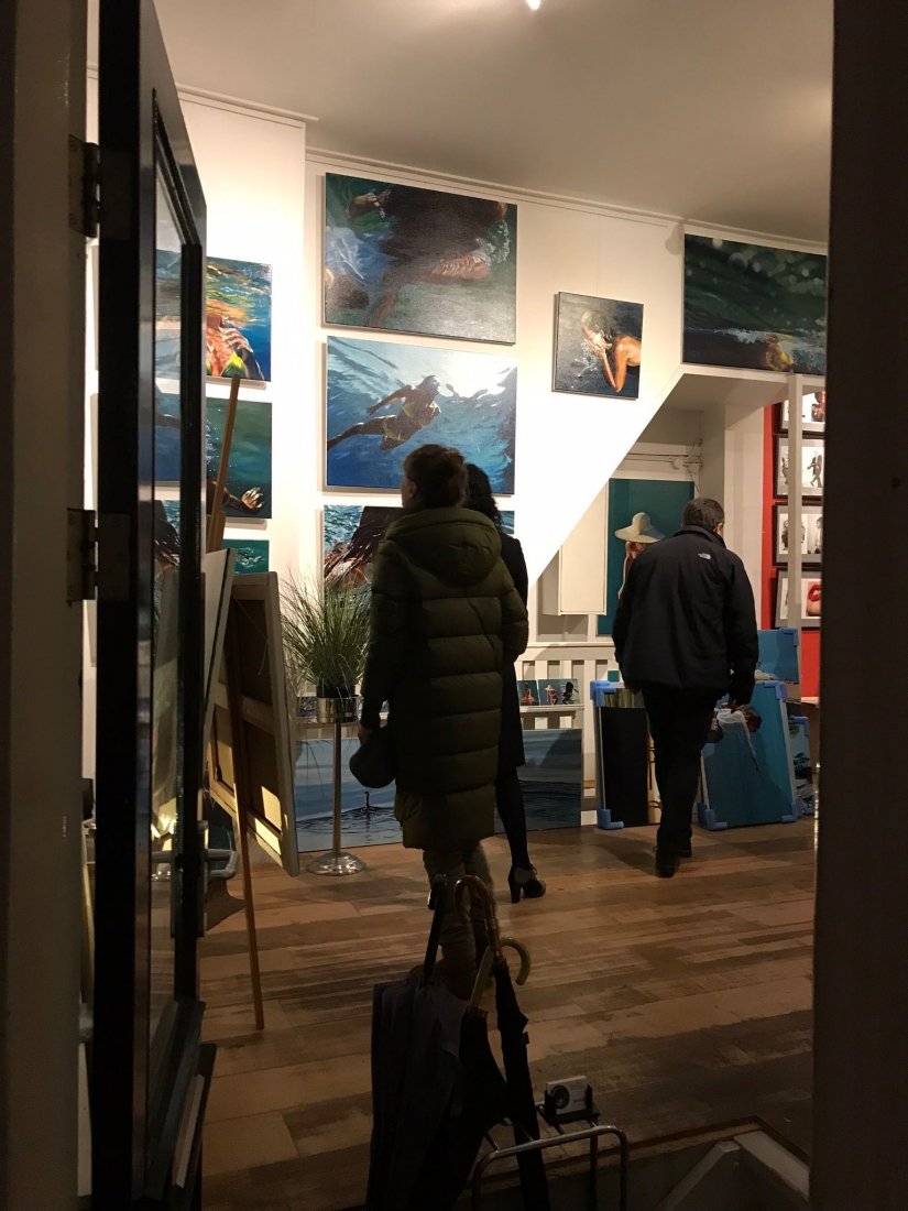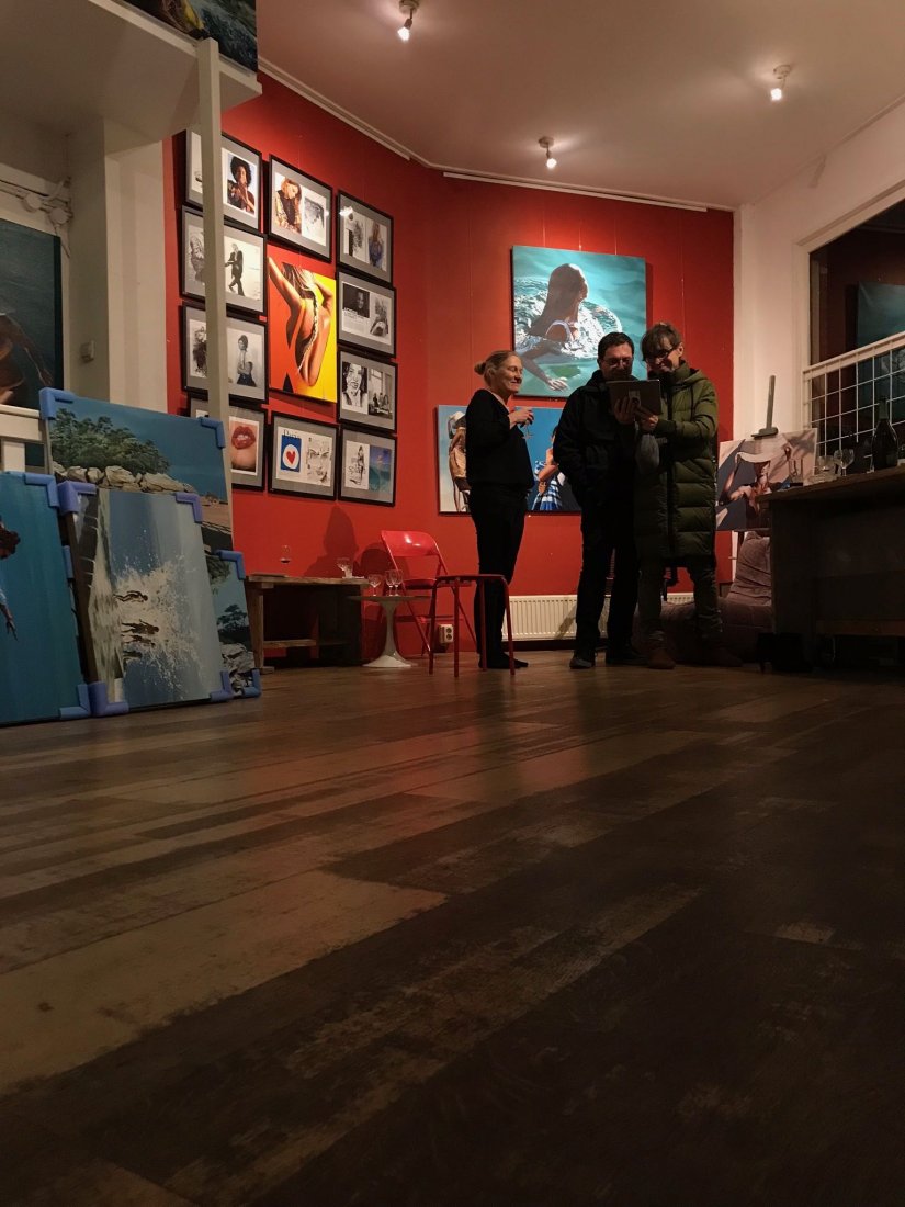 Il y a pile un an, on patinait sur ces canaux. Cette fois-ci, on trinquait sous les étoiles au milieu des toiles avec de la bonne musique. La galerie Rockarchive est un endroit plein de bonnes vibes. Les murs sont habitués aux clichés originaux sublimes de Jagger, Dylan ou Blondie… mais ils n’ont pas l’air contre quelques sirènes grecques pour changer. Le vernissage, ca fait partie de ces moments de bonheur prévisibles. L’instant parfait: entouré de la famille, d’amis et/ou de collectionneurs (souvent les mêmes), et du travail des douze derniers mois. Des visites surprises, du vin, des conversations jusque tard dans la nuit. On est bien.