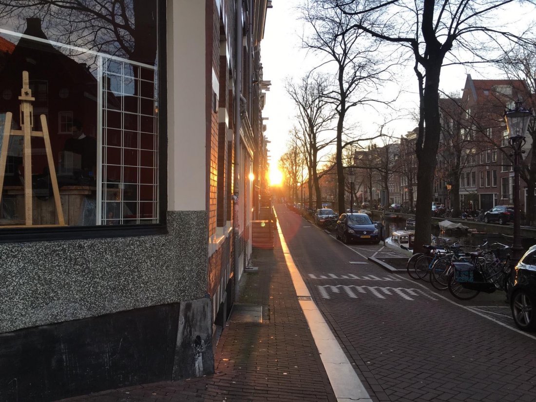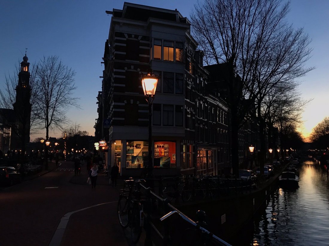 On était bien. Il avait fait beau toute la journée. Comme si le titre de l’expo avait un peu intimidé l’hiver sans trop y croire. Au bord du fameux Prinsengracht (canal du prince) et à l’angle du Eglentiersgracht (comme son nom l’indique).