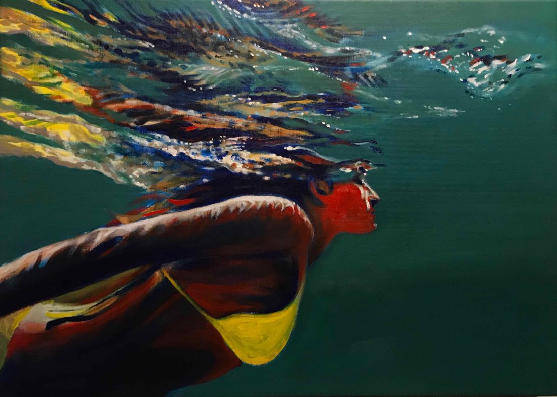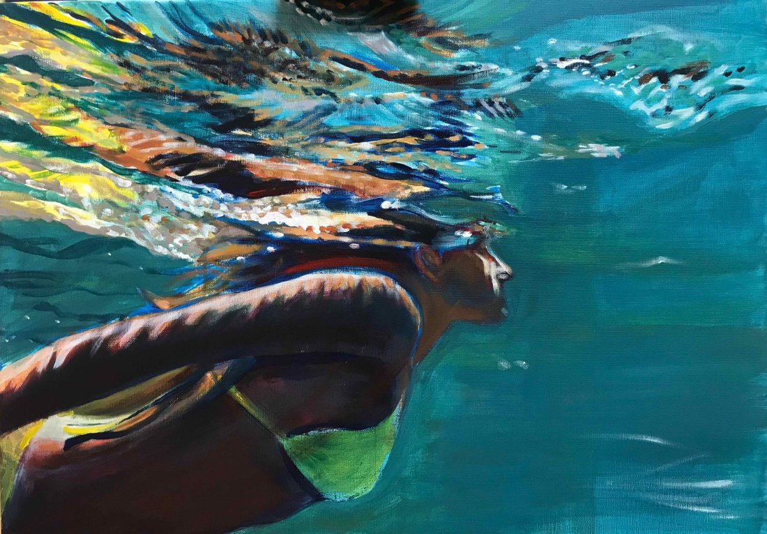 Working on the underwater reflections at the surface was the best part of it. Those colorful contrasts that look random but actually create light and liquid… I love playing with this!
