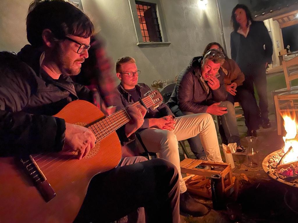 We had the same 3 courses menu everyday: Three hours demo in the morning, all of us around the master, in continuous conversation. Then three hours of practice in the afternoon, with surgical coaching just when needed (You’re stuck – Here he comes – You’re not stuck anymore – You’ve learnt something). Then endless hours around the brasero with this colorful gang of artists (10 different cultures), redesigning the world and sharing our studio playlists.