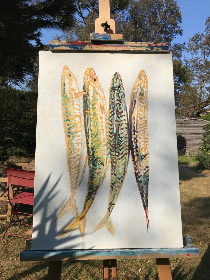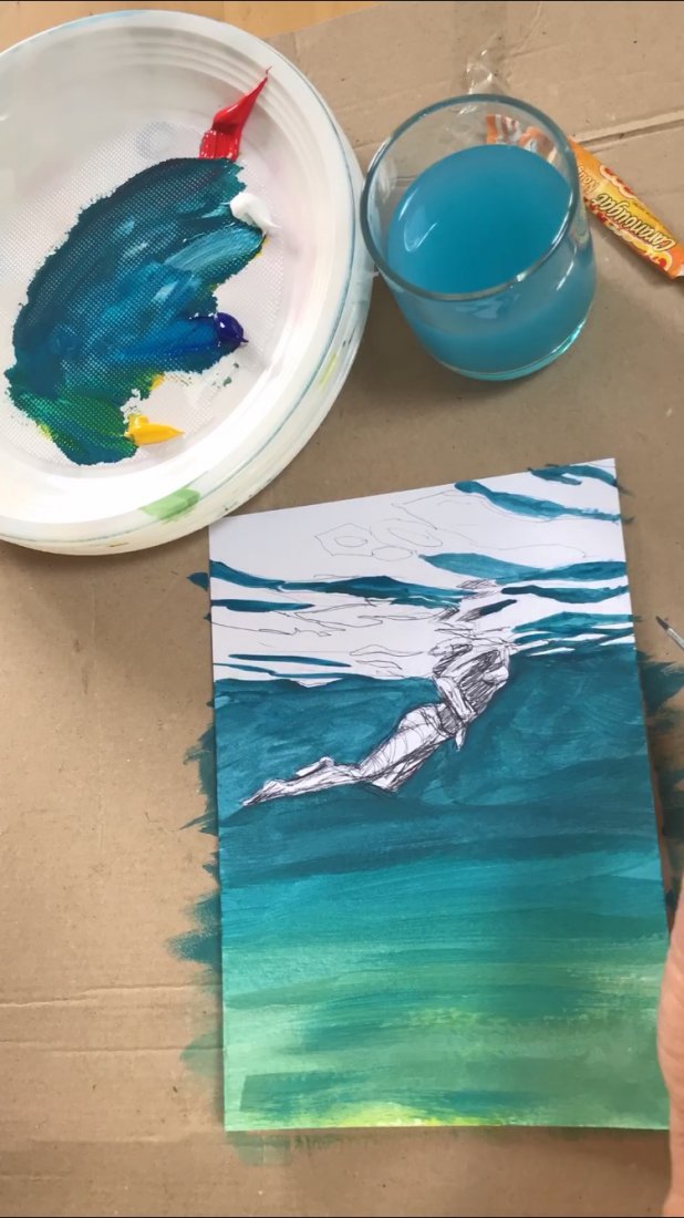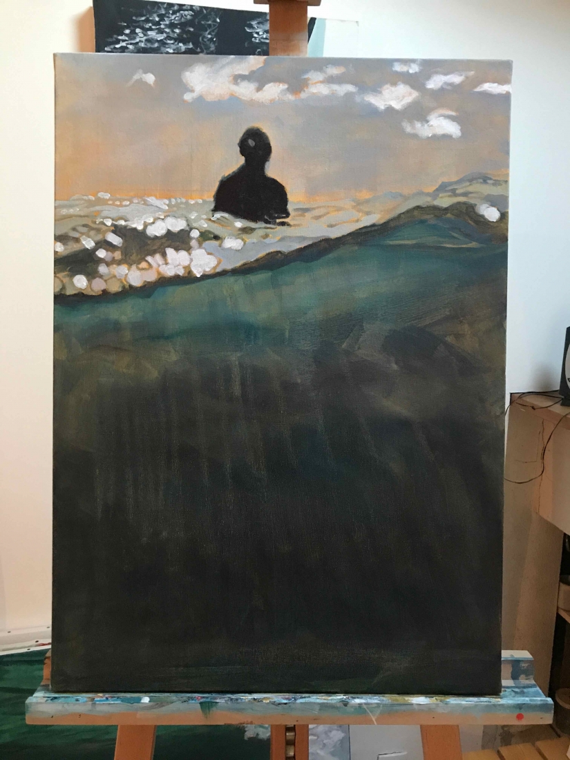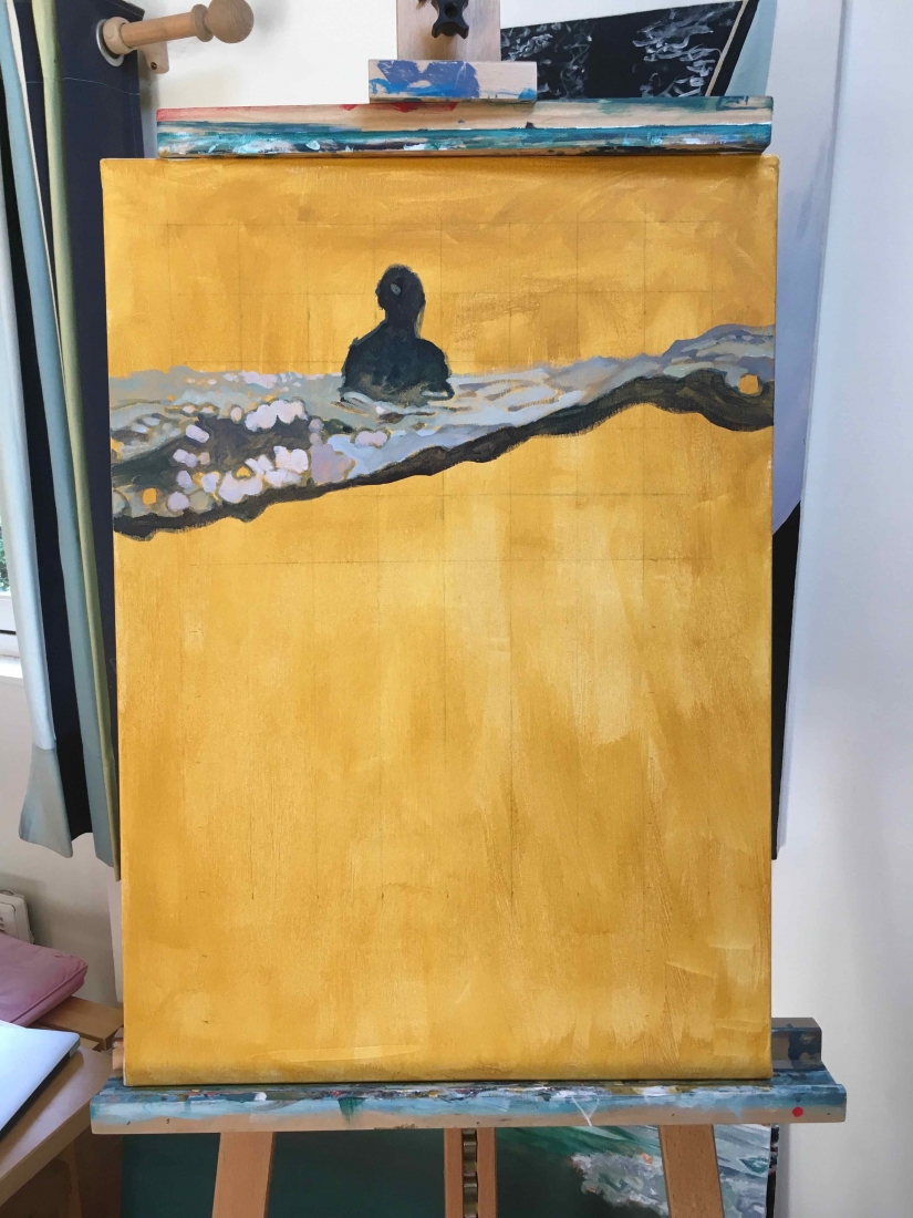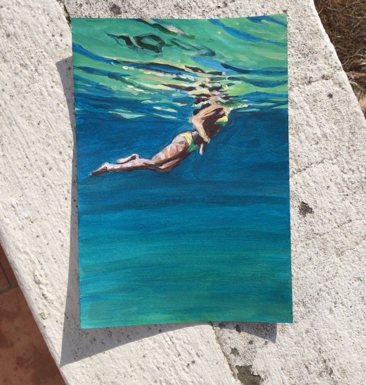 5 small paintings on paper 30x40cm. Inspired by an underwater video capture of my daughter which I cut in 5 consecutive shots, each following the previous one by half a second. Light and fluid as a dance move. I announced the project while posting the first painting of the series. The five sold out in 24h!!! Ok, Price tag was half of market value… but still!? I got messages from followers all over the world, so excited to be able to afford an original for the first time. The 5 little ones went to France, Greece, Australia and New-Zealand. But painting and selling them was just the first part of the game…