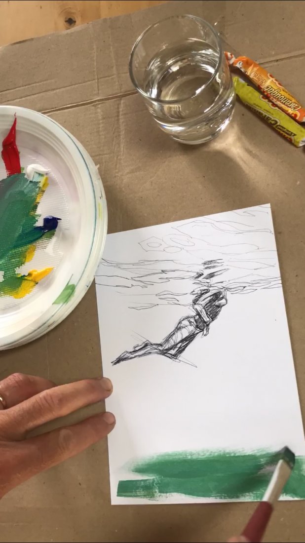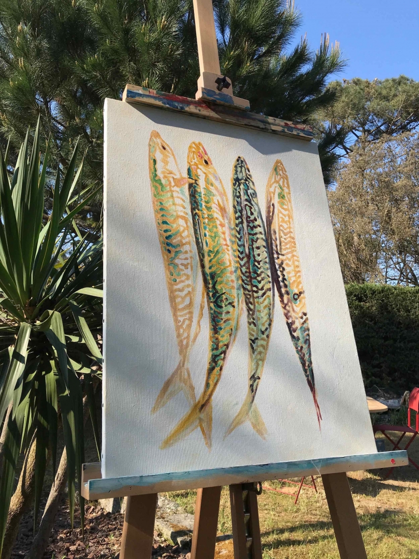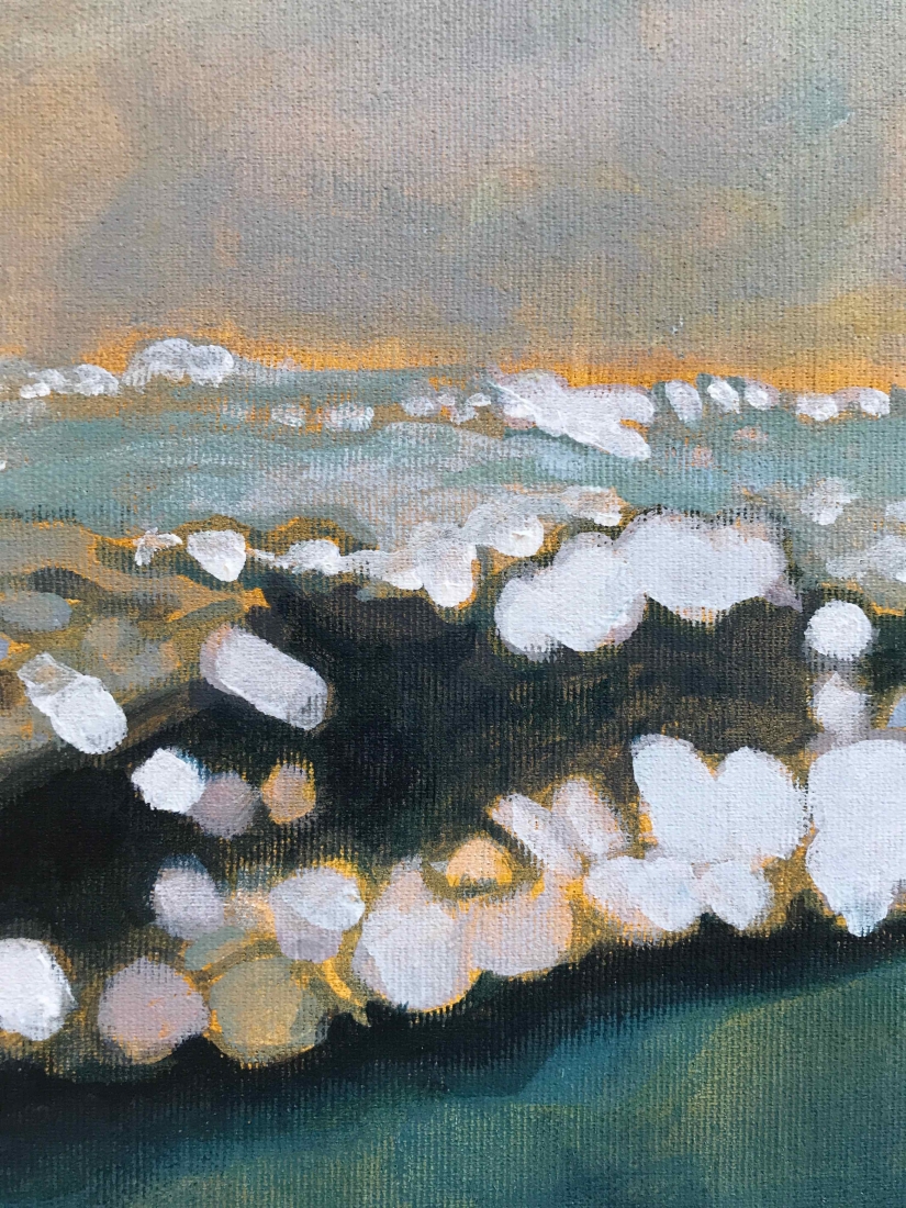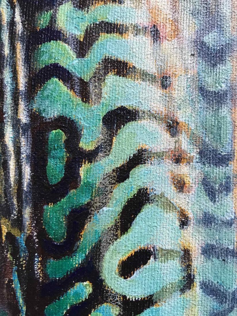 5 small paintings on paper 30x40cm. Inspired by an underwater video capture of my daughter which I cut in 5 consecutive shots, each following the previous one by half a second. Light and fluid as a dance move. I announced the project while posting the first painting of the series. The five sold out in 24h!!! Ok, Price tag was half of market value… but still!? I got messages from followers all over the world, so excited to be able to afford an original for the first time. The 5 little ones went to France, Greece, Australia and New-Zealand. But painting and selling them was just the first part of the game…