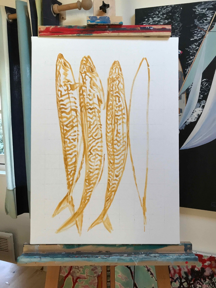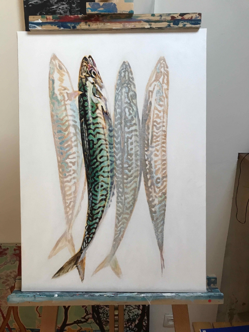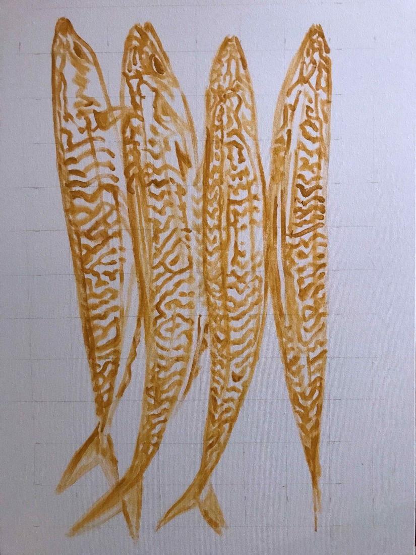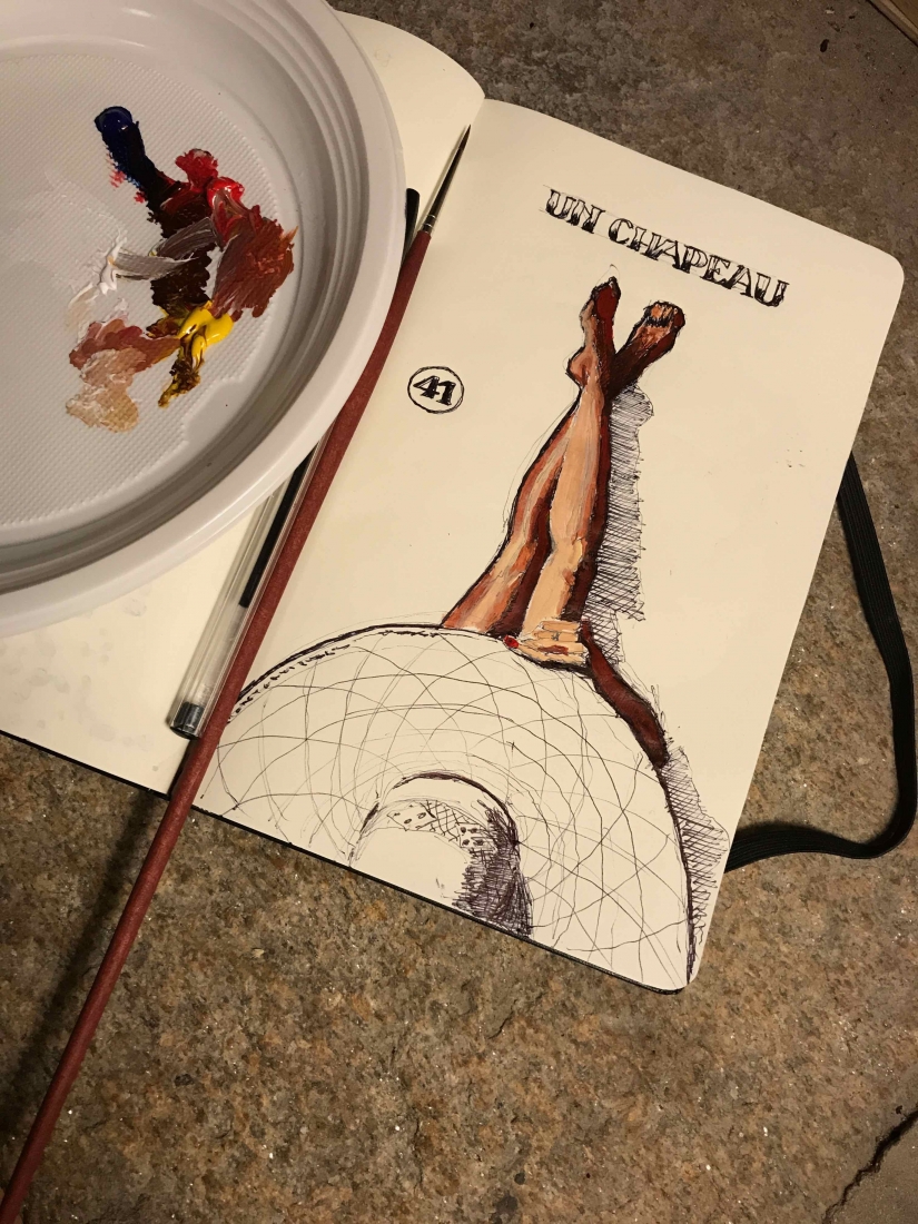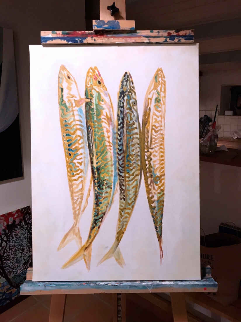 I actually didn’t do things quite sequentially. I couldn’t wait. I had chosen the artist and the piece I would buy even before finishing the series: Brigitte Yoshiko Pruchnow . An artist colleague at Saatchiart gallery. She is German-Japanese, based in Munich. She’s got a unique touch for kids, pools and pies. We’ve been following each other for years. I now have an original piece of hers in my studio. Thank you Matthew!
