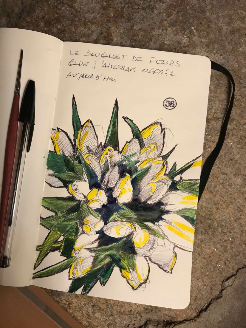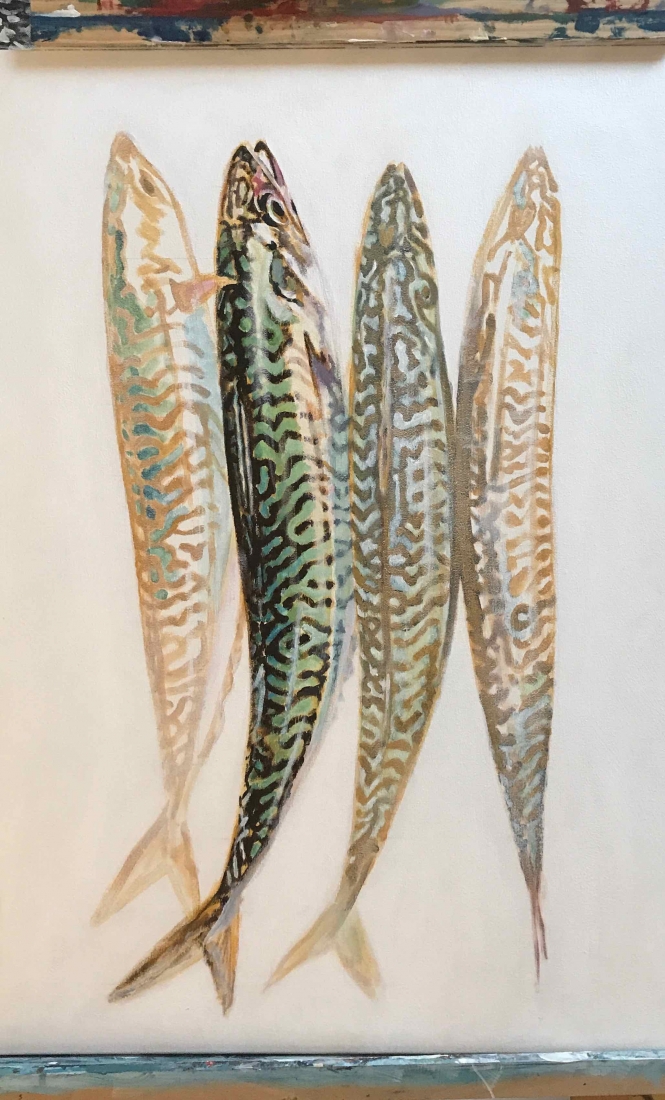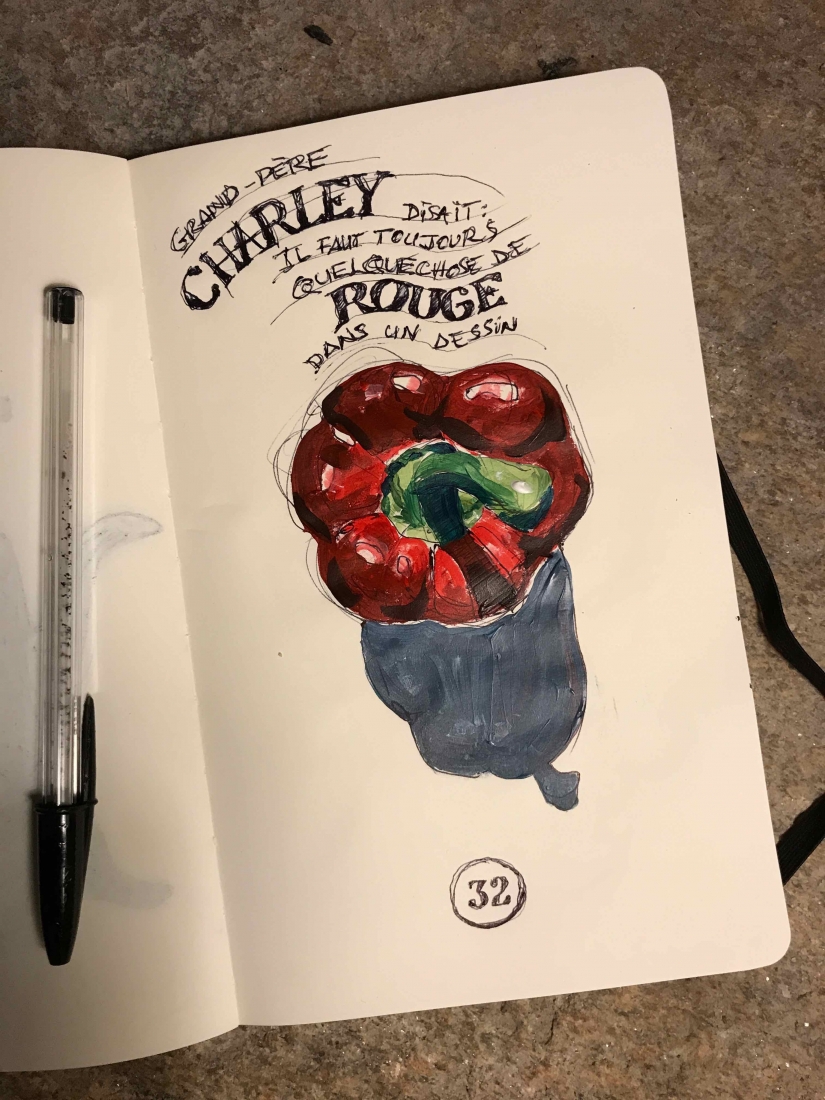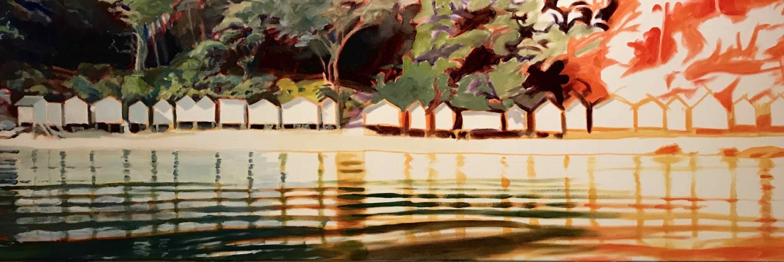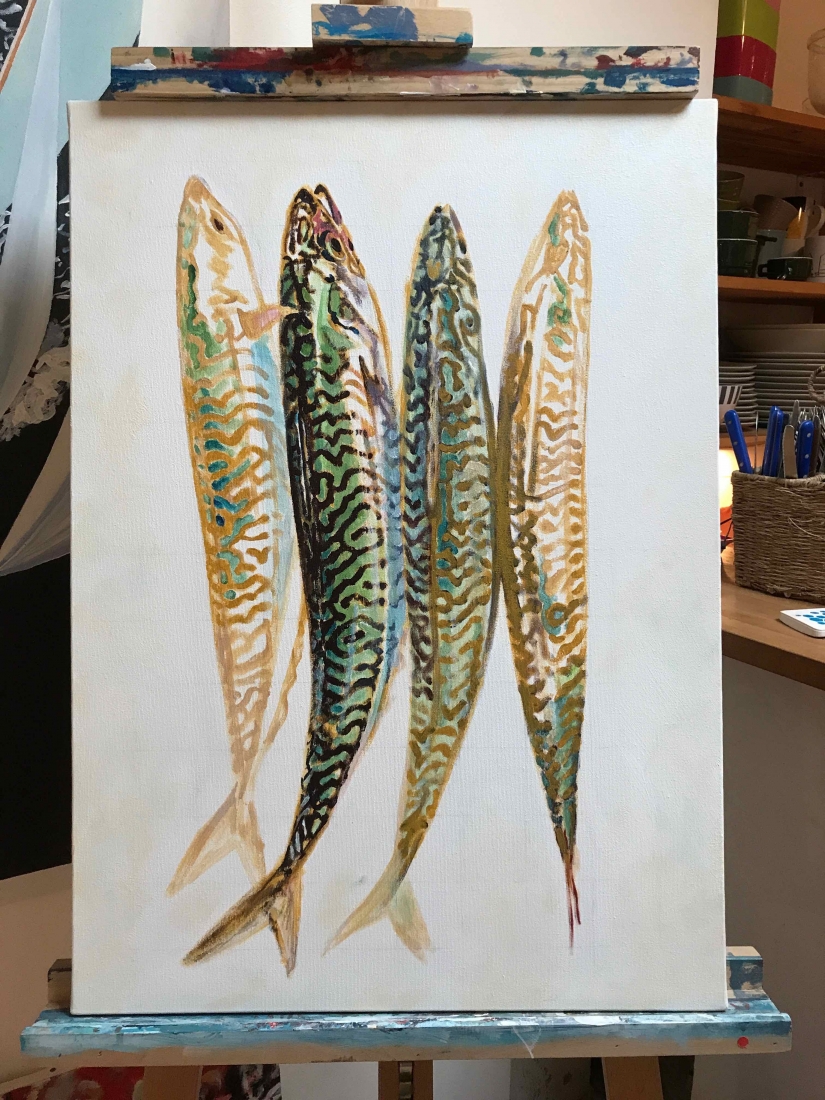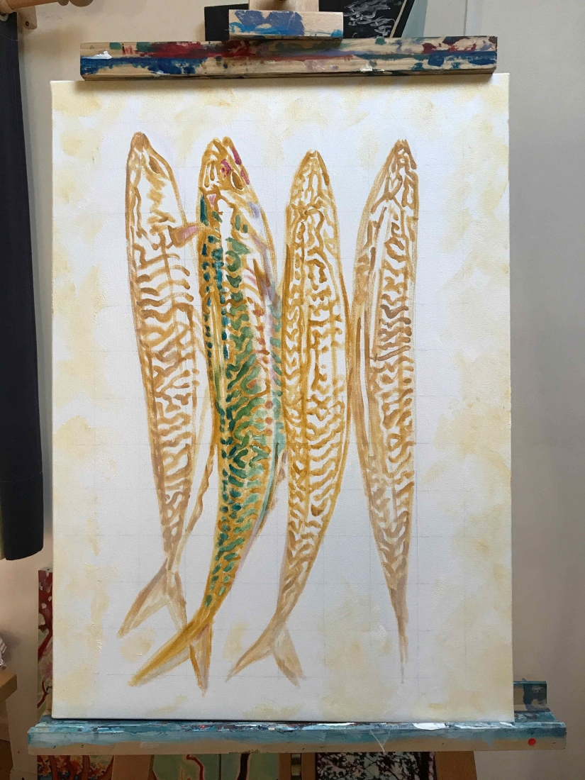 I actually didn’t do things quite sequentially. I couldn’t wait. I had chosen the artist and the piece I would buy even before finishing the series: Brigitte Yoshiko Pruchnow . An artist colleague at Saatchiart gallery. She is German-Japanese, based in Munich. She’s got a unique touch for kids, pools and pies. We’ve been following each other for years. I now have an original piece of hers in my studio. Thank you Matthew!