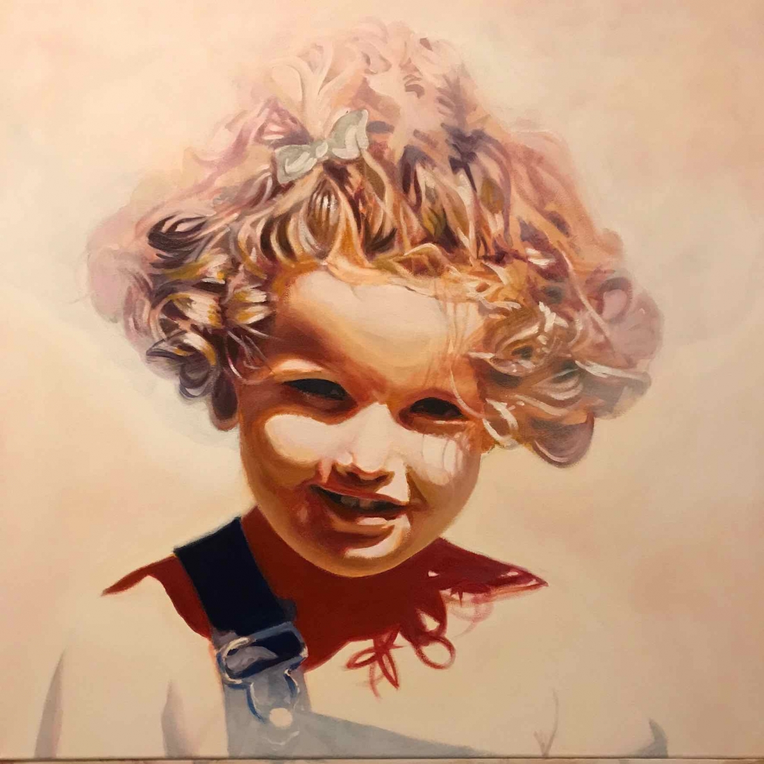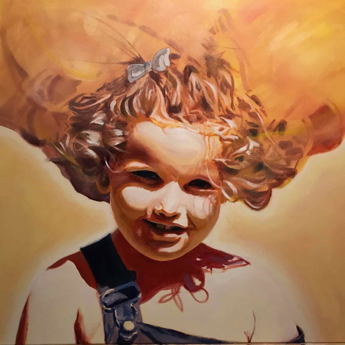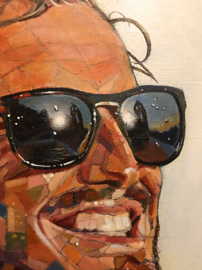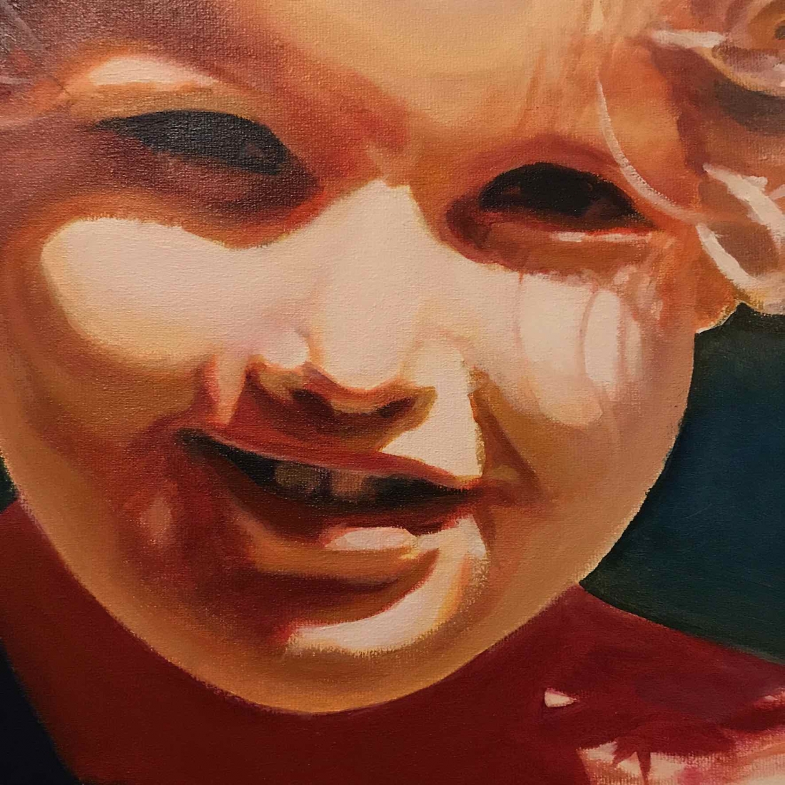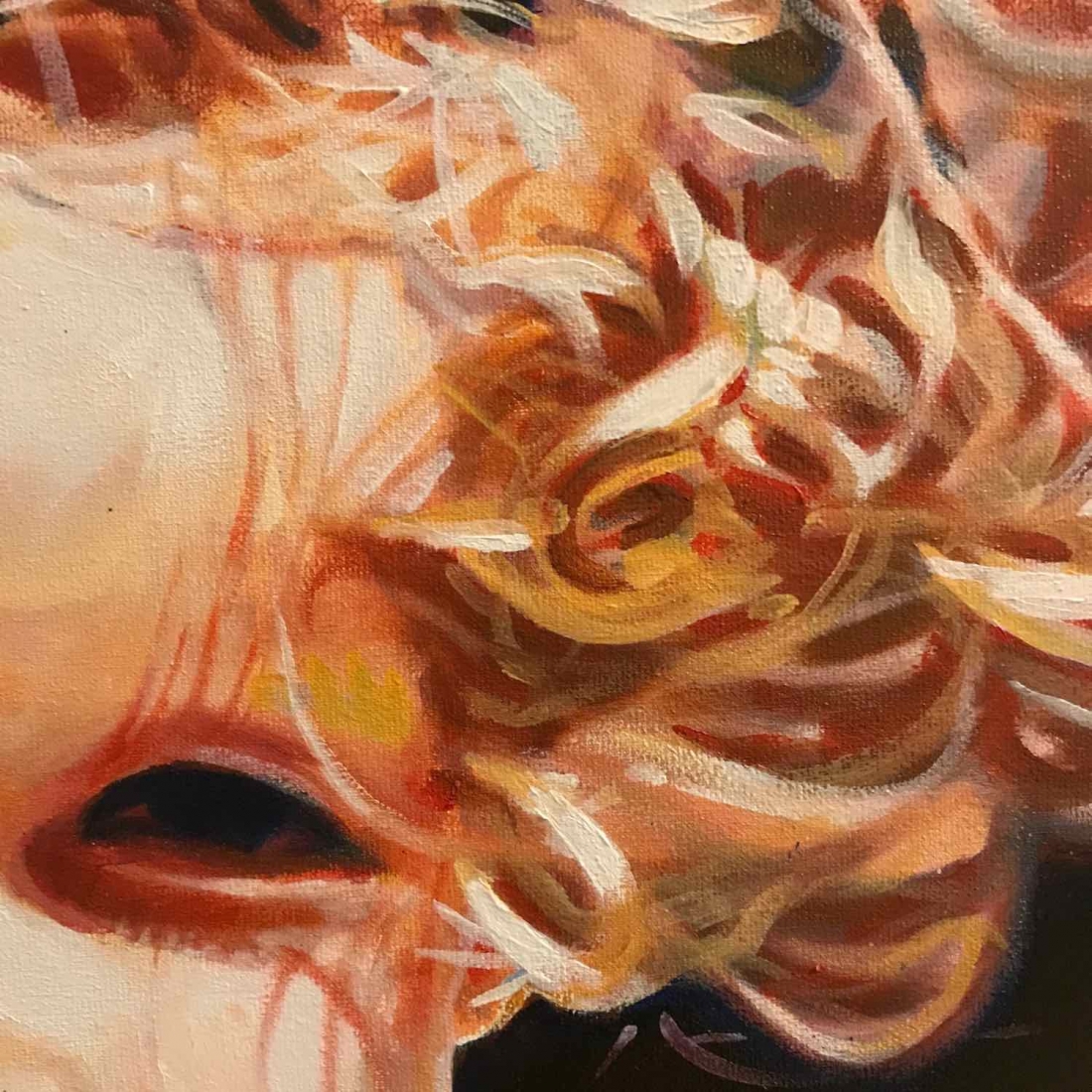 There are 2 great joys in my life as an artist: the creative process by itself, and the connections triggered by the result of it. Once upon a time, there was a Catalan art lover who used to follow my work and chat through Instagram. Her Canadian New-Brunswicker lover, who happens to work in Amsterdam, started asking if there would be a way, by any chance, to celebrate their anniversary with a portrait of his soul mate. A first secret meeting with him takes place in my studio. We browse through available pictures while tasting some goof wine… hoping one of them would be triggering the inspiration. It actually happens with that image. I liked the attitude a lot. The eyes looking down, as if lost in her thoughts. The long hair that doesn’t stop spinning right under the warm Canarian wind. This interesting hand that hesitates between a gesture of control or thinking. Many stories can start from there.