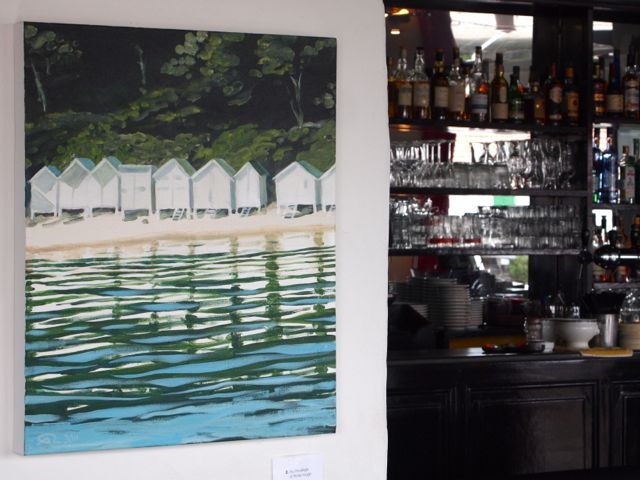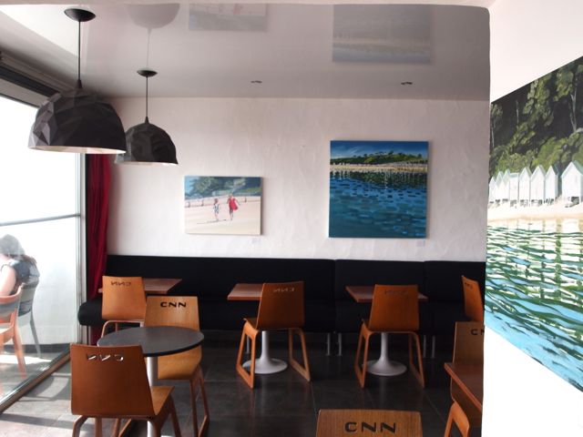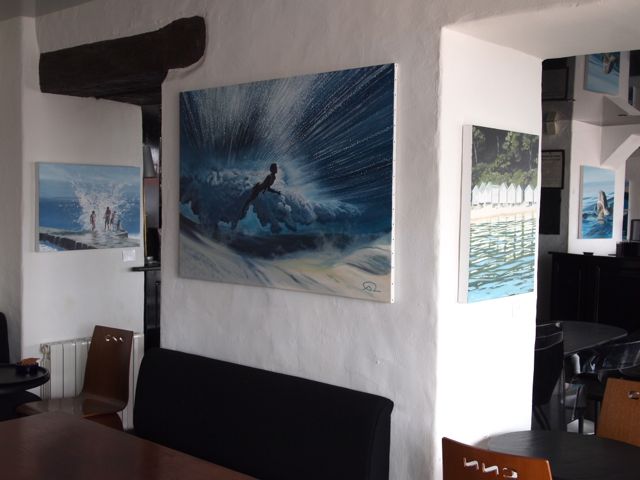 Seize d’entre elles sont là jusqu’au 13 octobre, dont les dernières productions de l’été. Je les envie les veinardes ! Elles vont en entendre des récits de croisières et de soirées, des scoops, des confidences. Elles vont en savourer des soirées au piano. Elles vont en croiser des regards. Intrigués, curieux, amateur… ou pas, furtifs ou insistants. C’est déjà un plaisir de les accrocher là. L’endroit semble fait pour elles.