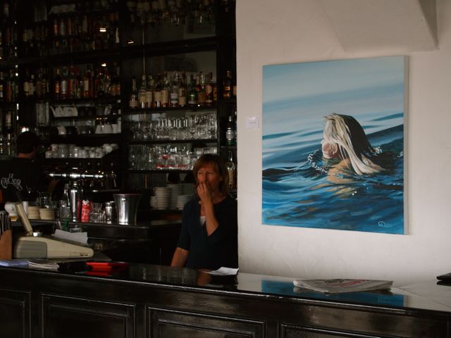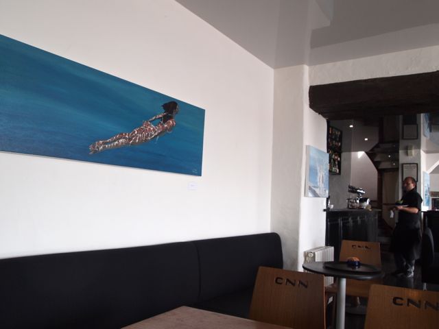 « Ah ! qu’il est doux de ne rien faire quand tout s’agite autour de nous ». Cette citation d’opéra-comique a longtemps été le slogan du comptoir le plus connu de l’île. Le « CNN » c’est le « Café Noir Noirmoutier ». Intemporel et incontournable point de rencontre après le marché. Un piano bar chic et branché mené par un galeriste passionné : le lieu idéal pour siroter un cocktail entre amis en commentant les dernières toiles retenues par le patron. C’est l’endroit que je préfère pour prendre le soleil en terrasse avec un croque-madame-Mélusine-café-noir après avoir arrimé le bateau dans le port. Quand on est là, tranquille, posé face au quai et au soleil, c’est vraiment doux. Et quand les toiles qui sont accrochées derrière sont les siennes, la Mélusine est vraiment bonne.